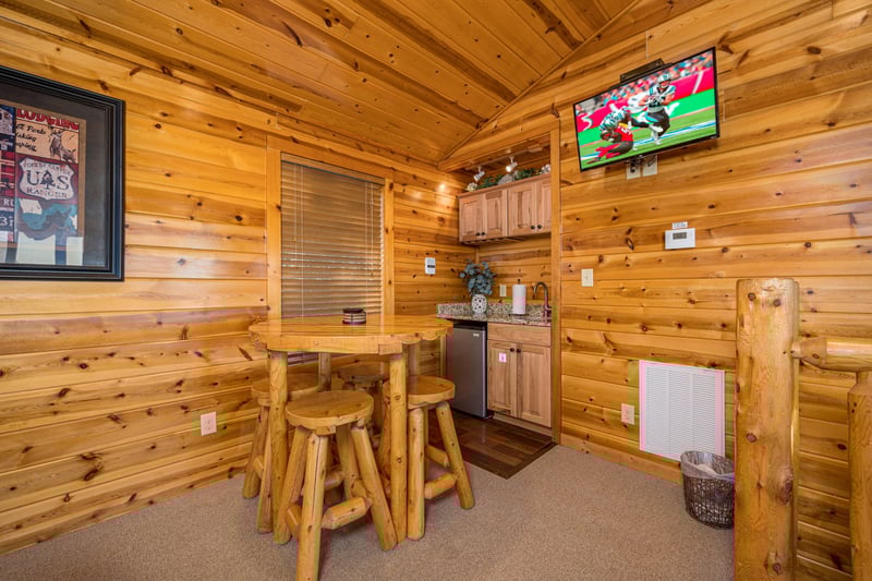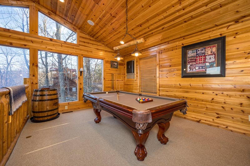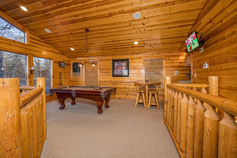 This cabin had the best view we could ask for. The cabin layout is fantastic and everything is clean, the pictures online do not do it justice. Pool table and screened in hot tub are great bonuses as well. One evening before dark, our family even saw a bear climbing a tree while we were on the back deck! We will be back to this cabin again when we are in the area.
