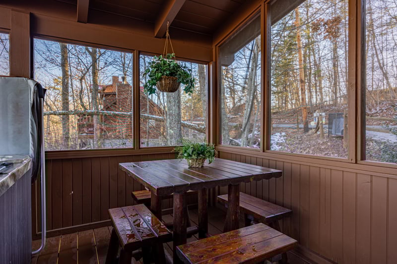 I've stayed in close to a dozen cabins/chalets in Pigeon Forge/Gatlinburg. This cabin had the best deck furniture by far. This was my mother's first trip to Pigeon Forge/ Gatlinburg. She thoroughly enjoyed sitting on the porch swing taking in the breath taking view of the mountains. We enjoyed breakfast at the table on the upper deck. Very enjoyable stay.