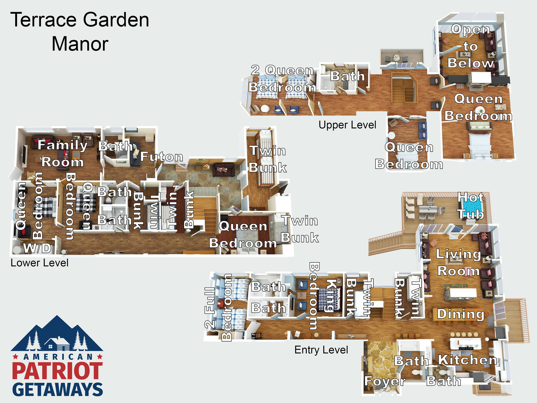 Our group had a great time! The house gave us plenty of room and we enjoyed the amenities and proximity to Gatlinburg and skiing. The staff was great to work with and we experienced no problems with any maintenance issues. We will definitely consider Ter race Gardens and Patriot Getaways when scheduling our future trips!