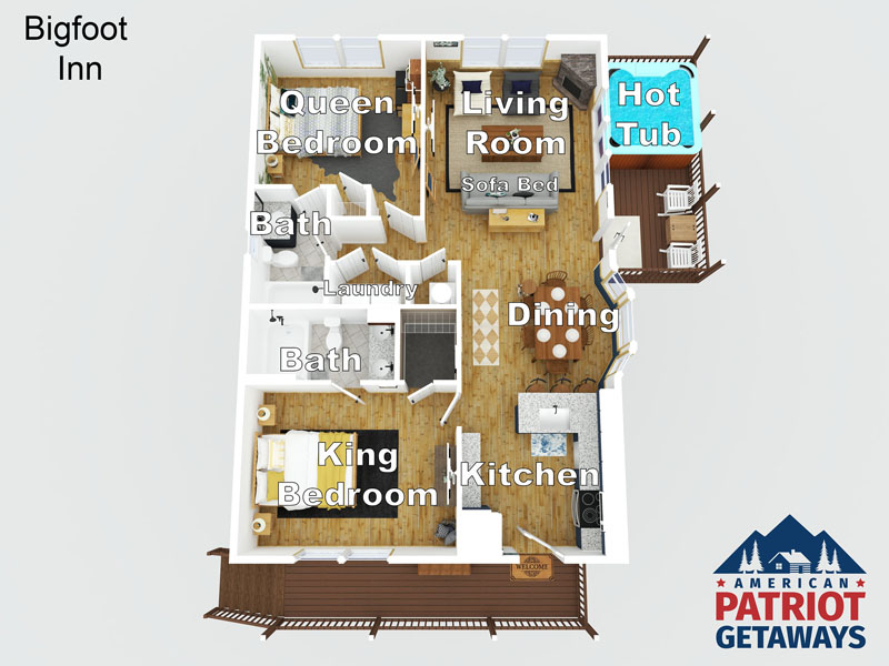 BigFoot Inn is a beautiful home in the heart of Pigeon Forge with access to the main Parkway in less than 2 minutes. This 2-bedroom, 2-bathroom property sleeps 6 guests. With a 4–6-person hot tub, gas fireplace, top of the line cookware and a jacuzzi tub in the primary bath, you will truly have the perfect spot to get away but not too far away. And for the kiddos, aside from the action of Pigeon Forge, there is a gaming station in the secondary bedroom. This property is also close to two grocery stores (Kroger and Publix) as well as Wear Farm Park which has walking trails and a large playground and picnic areas. It is also uniquely situated to enjoy the Wears Valley/Townsend areas which offer locally owned shops and eateries you don’t want to miss. What are you waiting for? Book today!
