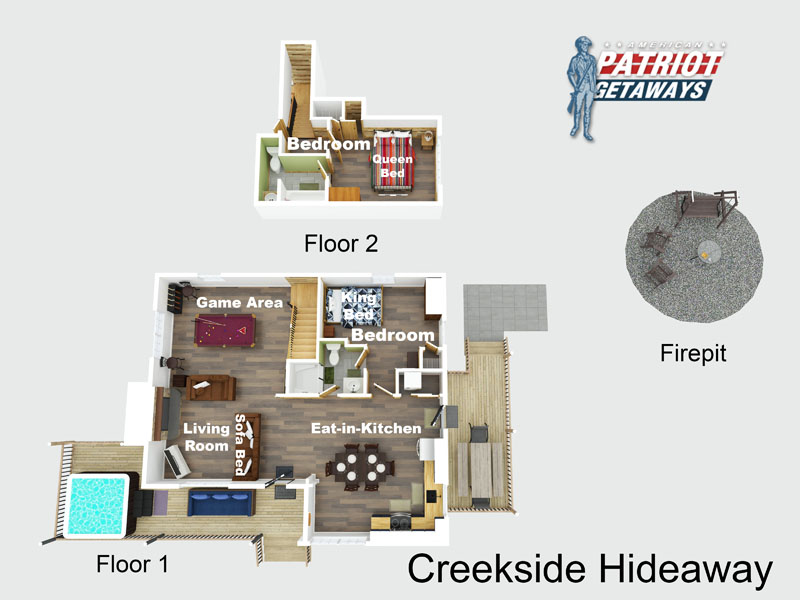 Escape to Creekside Hideaway for the ultimate retreat experience. This luxurious cabin can accommodate up to 6 guests and is conveniently located near local attractions while still offering a peaceful and secluded setting. Spend your mornings relaxing on the front porch next to the creek, create lasting memories in the game room, and cozy up by the fireplace for quality family time. Unwind in the hot tub, grill a delicious meal, and start planning your next getaway at Creekside Hideaway.
