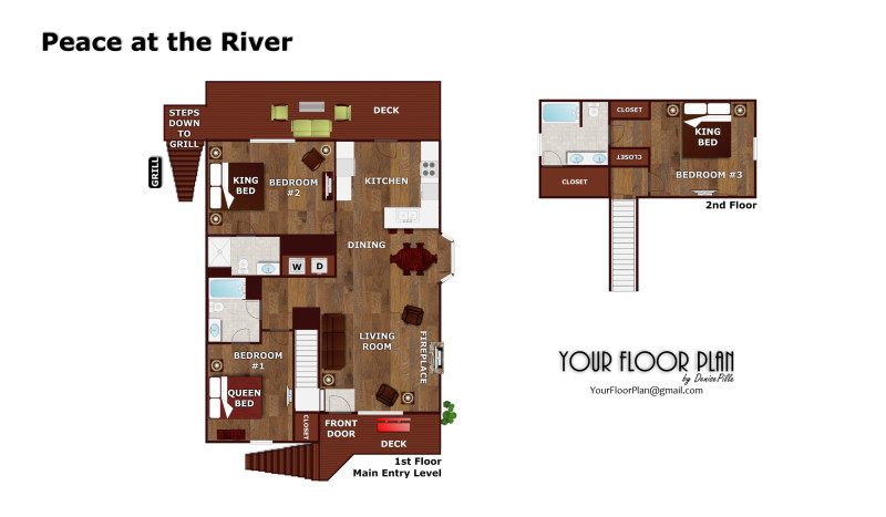Pigeon Forge's PEACE AT THE RIVER offers guests a comfortable home in a convenient location! Located less than one mile from the heart of Pigeon Forge, and accessed without any steep mountain roads, you'll find PEACE AT THE RIVER when you stay at this charming 3 bedroom 3 bath mountain home. Two levels of elevated living will take your vacation to new heights! Each of the home's 3 bedrooms include their own attached bath, making PEACE AT THE RIVER comfortable for both couples and families too! Take in a dinner show, shop, celebrate, and dine-out just up the street from the chalet, or just stop by the grocery. The full kitchen and charcoal grill makes eating-in a breeze. This year, find some peace on your vacation and stay where you play, ski, shop, dine, climb, hike, zipline, go cart, or anything your Pigeon Forge adventure includes. You'll find PEACE AT THE RIVER just down the street!