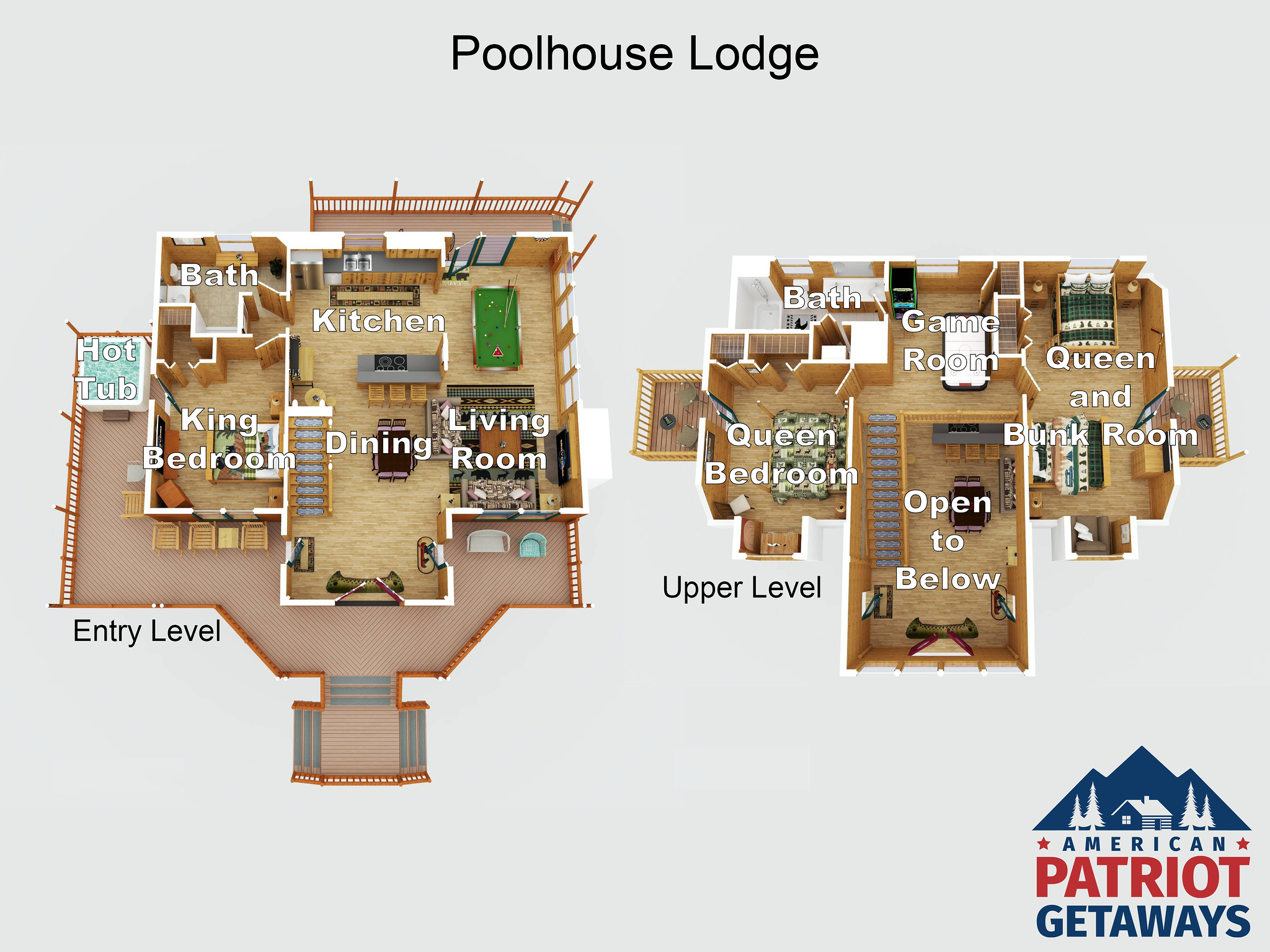 It's in the mountains, but not on a mountain. Easy access, just off Walden's Creek, sits your dream vacation. Built inside a covered bridge resort, POOLHOUSE LODGE is the kind of vacation cabin that folks put on their bucket list! Its vaulted ceilings and wall to floor timber will have you feeling a little rustic, a little prestige, and a whole lot of relaxed! With the community pool literally right next door, any stay here from Memorial to Labor Day will be spent working on your backstroke. With room for 12, this 3-bedroom, 2-bathroom cabin is the perfect spot for your yearly family vacation! Just think: the kids can each bring a friend. While they're busy at the arcade or air hockey table, you can finally take some time to focus solely on you and your significant other. Sure to leave you impressed, likely to leave you revived, POOLHOUSE LODGE is the cabin that will put the cherry on top of your Pigeon Forge adventure!