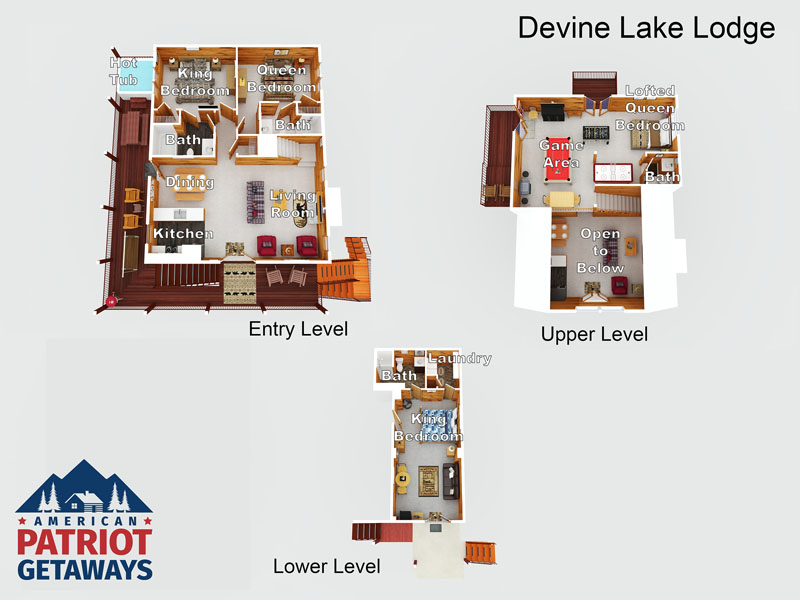 Located at the beautiful Douglas Lake Resort, Devine Lake Lodge is the perfect place to truly get away from it all. This three bedroom, three and a half bath property easily sleeps 6 guests. Devine Lake Lodge allows direct access to Douglas Lake and offers stunning year-round sweeping views. Relax in the hot tub and enjoy time in the fully stocked living space, kitchen or game room. SEASONAL offerings include a community boat launch as well as a resort pool. The property allows for up to 4 vehicles and 1 boat. For adventure guests can explore Pigeon Forge and Gatlinburg as well as local attractions such as: The Deer Farm and Petting Zoo, or Forbidden Caverns. If escaping the crowds and truly getting away to the peace of a mountain and lake getaway sounds divine to you, then you need to book Devine Lake Lodge.